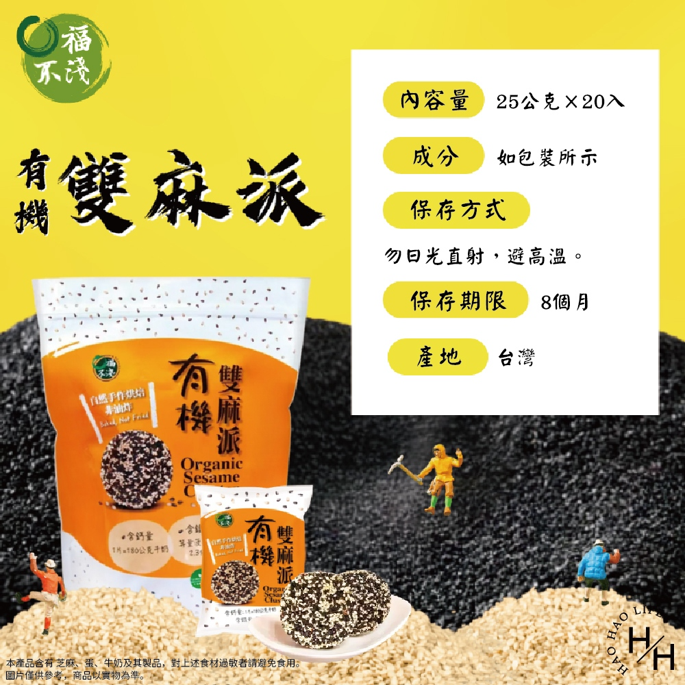 品名 : 口福不淺 有機雙麻派 25公克 X 20入