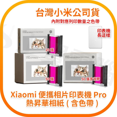【含稅快速出貨】Xiaomi 便攜相片印表機 Pro 熱昇華相紙 附色帶 20/50/50帶背膠 台灣小米公司貨