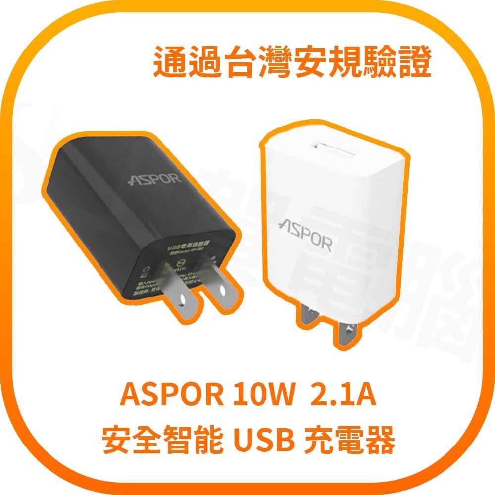 【含稅快速出貨】10W USB 充電器 ASPOR 安全智能充電 電源供應器 2.1A 通過台灣安規驗證