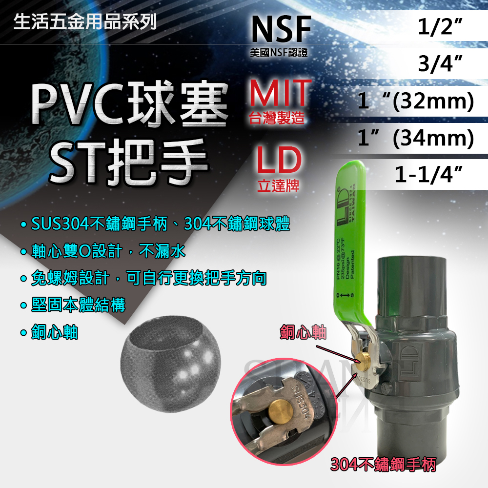 台灣製造 LD 立達 PVC 球塞凡而【1/2"~1-1/2"】 球塞 可調式把手高耐壓 鋼珠球閥 球閥 大流量 不鏽鋼