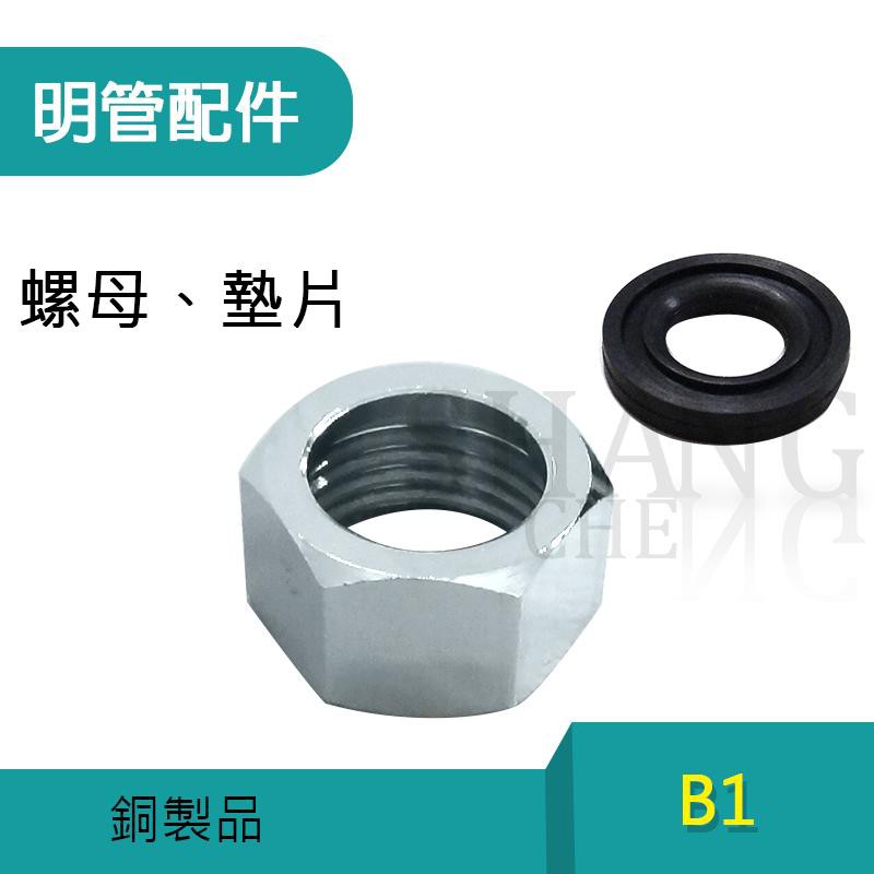 尚成百貨.(4分螺母 + 墊片) 銅電鍍 曲管螺母 明管 固定龍口 內外牙彎頭 三通 接頭 白鐵軟管 熱水器配管