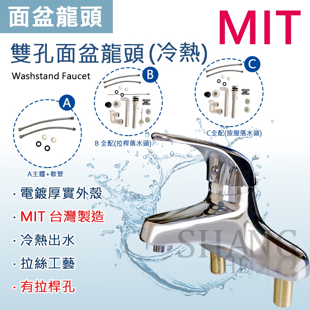 台灣製造 4" 雙孔面盆水龍頭 面盆龍頭 水龍頭 龍頭 雙孔龍頭 冷熱水龍頭 兩隻腳水龍頭 有拉桿孔 拉桿式落水頭 YR