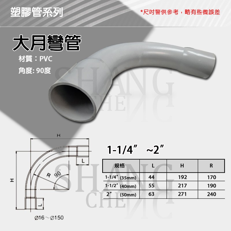 PVC 大月彎 大灣 90度大彎 大月灣 PVC管 1-1/4"、1-1/2"、2"