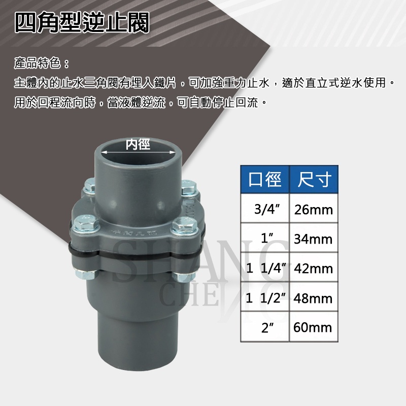 PVC【中間逆止閥】四角型中間閥 立式逆止閥 四角型 逆止 凡而 中間凡而 3/4" 1" 1-1/4" 1-1/2"