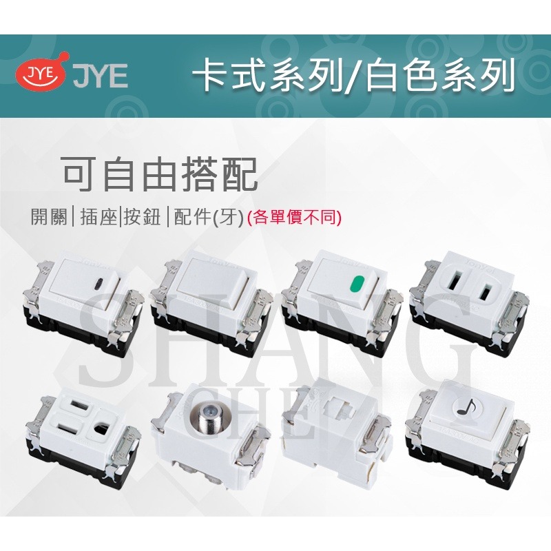 中一電工 開關單品 自由組裝 月光系列 單插接地插座 卡式接地插座 單開關 網路 電視 電話 白色插座 白色