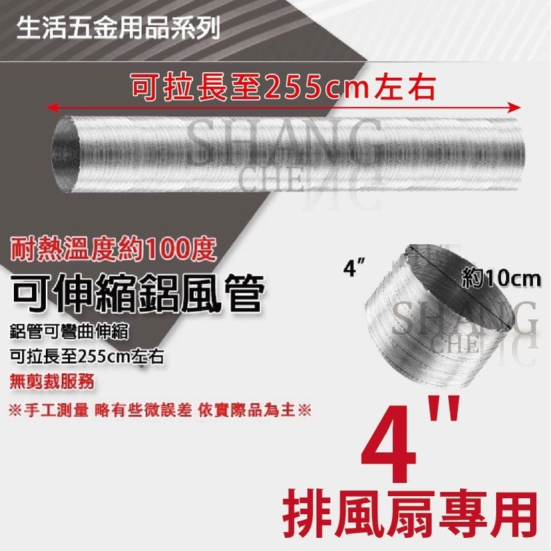 4" 四吋 廁所排風扇專用 可伸縮鋁風管 通風管 排氣管 排油煙管 彎頭 散熱鋁管 可拉長至255cm左右~