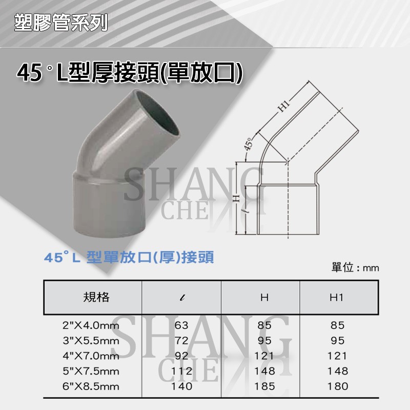 【尚成百貨】南亞 PVC 厚 45度彎頭 (單放口) OL 5" 6" L型接頭(單放口) 塑膠管彎頭 水管接頭.