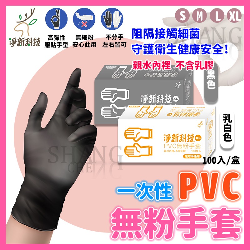 淨新PVC無粉手套 防護手套 PVC手套 透明手套 塑膠手套 廚房手套 100入 一次性手套 拋棄式