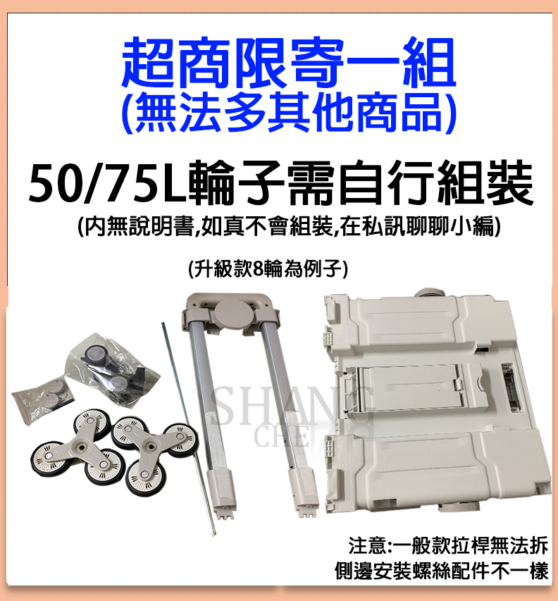一般款8輪(桿子固定/上蓋是分開的):爬梯、斜拉(箱子要倒一邊,內有放影料或是開封食品,可能漏出來)