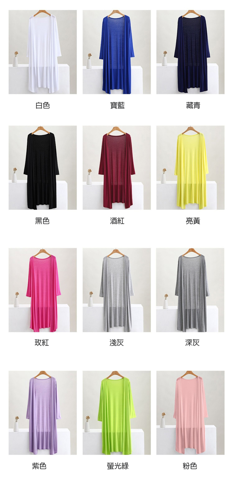 【許願花園】莫代爾無扣防曬薄外套 長版開衫 旅遊沙灘罩衫