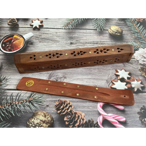 此款香板及香盒為印度製作,本來為線香專用(插香的孔洞較小),瑞塔有另外加工將孔洞加大,因此賣場內的白鼠尾草系列臥香也可以使用。