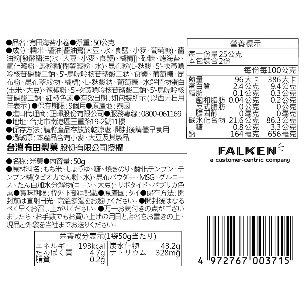 1.商品1.商品組合/規格:【有田製果】海苔小卷便利包50g