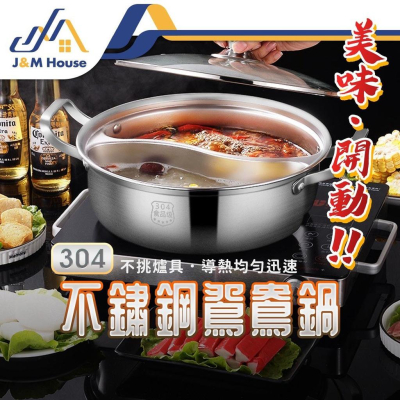 不銹鋼304鴛鴦鍋 一體鴛鴦火鍋 麻辣鍋 不挑爐具 一體成形火鍋32CM 無焊接 附鍋蓋