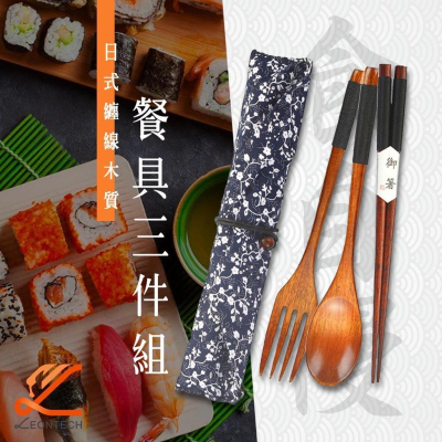 【台灣現貨】日式纏線原木餐具三件組 筷子 湯匙 叉子套裝組