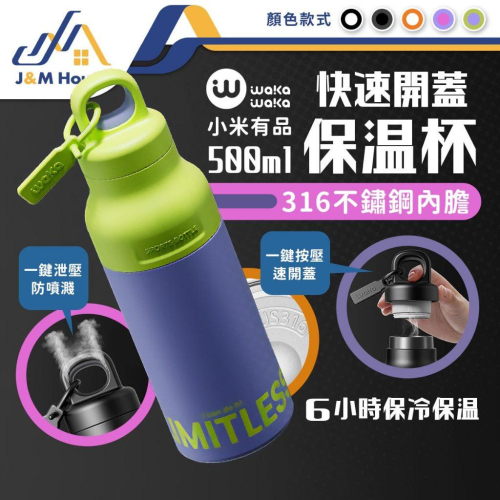 小米有品 waka保溫杯 316不銹鋼保溫杯 速開不銹鋼保溫瓶 500ml 保冷 保冰 運動水壺