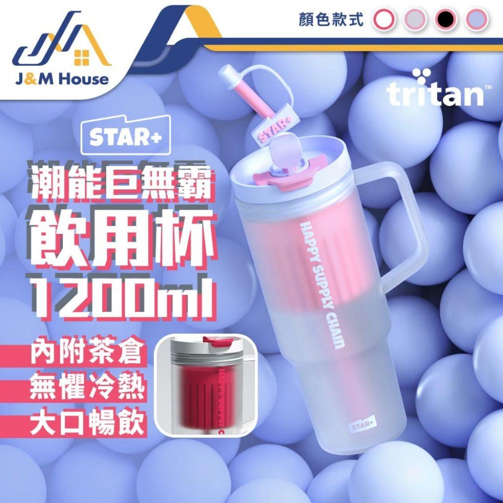 STAR+巨無霸吸管杯 大容量水杯 環保杯 Tritan水杯 雙飲杯 1200ml 隨行杯