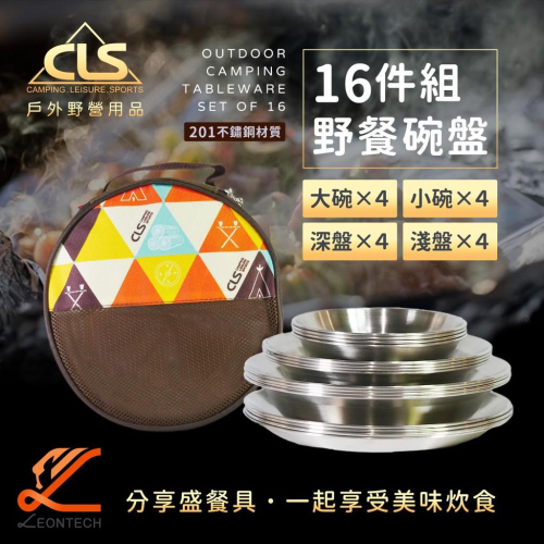 【台灣出貨】CLS 戶外野營不銹鋼餐盤16件組 露營野餐盤 附收納袋