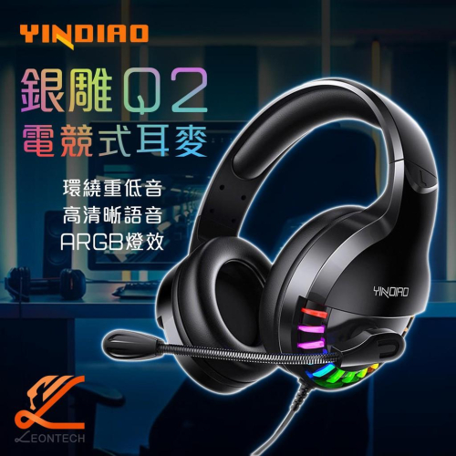 【台灣出貨】銀雕Q2重低音頭戴電競耳機麥克風 耳機 頭戴式耳機 電競耳機 重低音電競耳機 電腦耳機 耳罩式耳機 有線耳機