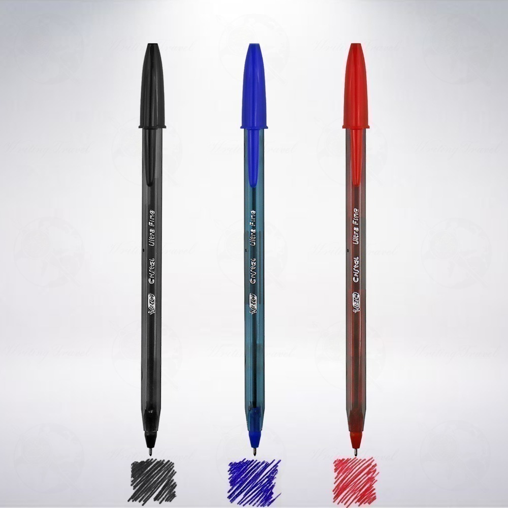 BIC出品的經典原子筆款式: 「Cristal」,略為透明的筆身,並以筆蓋識別區分顏色款式,總共有黑色、藍色、紅色共3種款式(商品圖由左至右)。 筆芯粗細為0.7mm,可適用於大部分一般書寫情形。