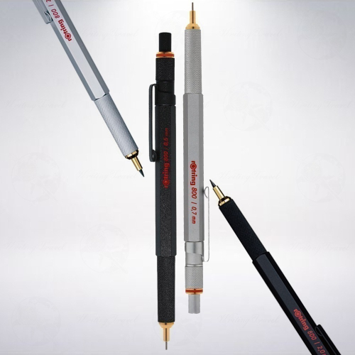 「rOtring 800」是以「rOtring 600G」為藍本而於1993年誕生的高階筆款,外觀上的組成元素除了黑色、銀色、紅色,特別在筆頭與筆帽附近加上金色點綴,如同畫龍點睛般的為它賦予了完整而奢華的靈魂,筆頭可以伸縮,只要轉動筆帽附近的金色圈圈即可輕鬆操作,推擠式出芯,重心明顯,視野良好,是製圖筆的首選之作。