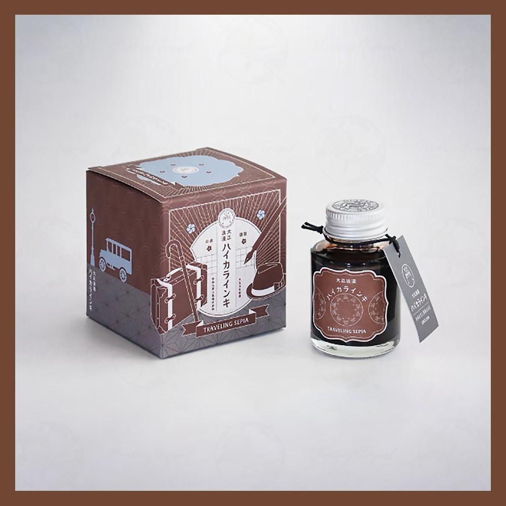 簡介: 「奔馳在大正浪漫的回想」,1918年創業時,寺西化學工業的標誌性產品就是墨水。那個時代想要為世界提供色彩並為日常生活做出貢獻的夢想沒有改變。像大正時代的人們一樣,通過夢想克服了動蕩的時代,寺西化學將當時的想法放入墨水瓶中。一直在提出希望為文化生活做出貢獻的產品。在墨水瓶的頂部,寺西化學工業的商標「吉他標誌」裝飾著創業初期的翻版設計。「旅行棕/Traveling Sepia」為漂泊的褐色,對未見過的世界充滿渴望的浪漫色彩。