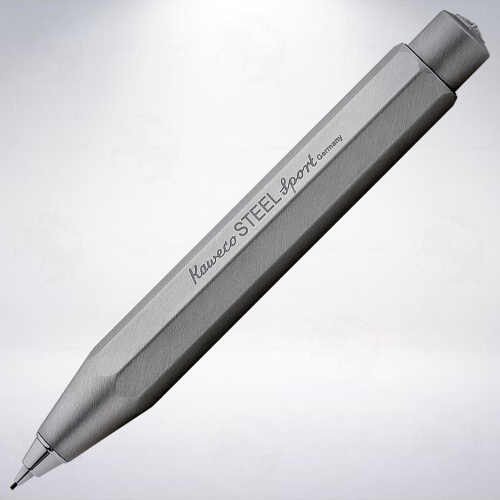 沒錯!這支筆如果你只是衝衝一瞥的話,會以為是BRASS Sport的「灰階版」,由於主要材質改為使用不鏽鋼,又以原色呈現,所以外觀的冷冽感相當強烈,筆身表面自然留下的金屬紋路,略帶有髮絲的感覺,讓整體畫面更加豐富與精彩。筆芯規格為0.7mm,這也是許多歐系筆常用的,市面上可以找得到的0.7mm替芯幾乎都可以使用,所以入手後可以不用擔心補充筆芯的煩惱,補充筆芯時只要將筆帽拆下,將筆芯置入塑膠製的儲芯桶即可,出芯機制採用按壓出芯(Push Button)的方式,這是現代筆的主流方式,使用上沒有門檻。整支筆的長度約為10.5公分,厚度約有1.2公分,重量約有38.5公克,這些規格皆和BRASS Sport款式相同,以長寬比(Aspect Ratio)來看,呈現一貫的「矮胖」造型。