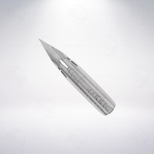 外觀: 外觀和一般Nikko G尖一樣,筆尖長度約3.7cm,墨孔為長方扁橢圓形,兩側有開口,增加彈性,墨孔下方有刻G字眼,筆身刻有NIKKOPEN NIKKO MADE IN JAPAN字眼。