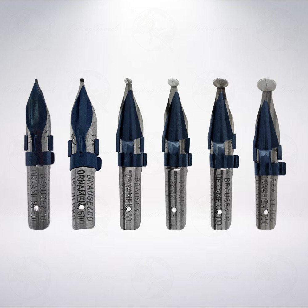 外觀: 整體筆尖長度約4cm,筆尖頭為圓型,筆尖前半段,上下皆有儲墨器,筆身刻有「BRAUSE & CO ORNAMENT 500 ISERLOHN」字樣