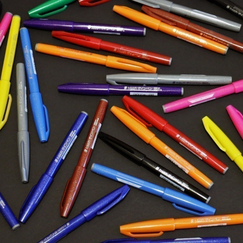 毛筆的筆刷很軟,這款筆較硬,但又有彈性,所以我稱之「類毛筆」的簽字筆,他的特點就是可以寫出不同線條,粗細明顯,不論想表現出中文字的撇、捺,或者英文書法中的粗細,只要經過練習,都可以玩出自己想要的字體。 這款筆顏色豐富,還可以玩七彩文字,這次在一個英文單字換不同色彩,真的挺有趣的,只可惜他的混色效果沒有墨水那麼明顯,那就單純將不同色彩組合變化吧!