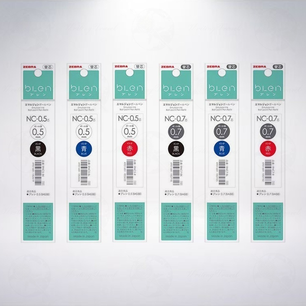 日本知名文具品牌「斑馬/ZEBRA」專門為輕巧實用的「bLen」原子筆所出品的專用替換筆芯,顏色有黑色、藍色與紅色,尺寸有0.5與0.7mm。