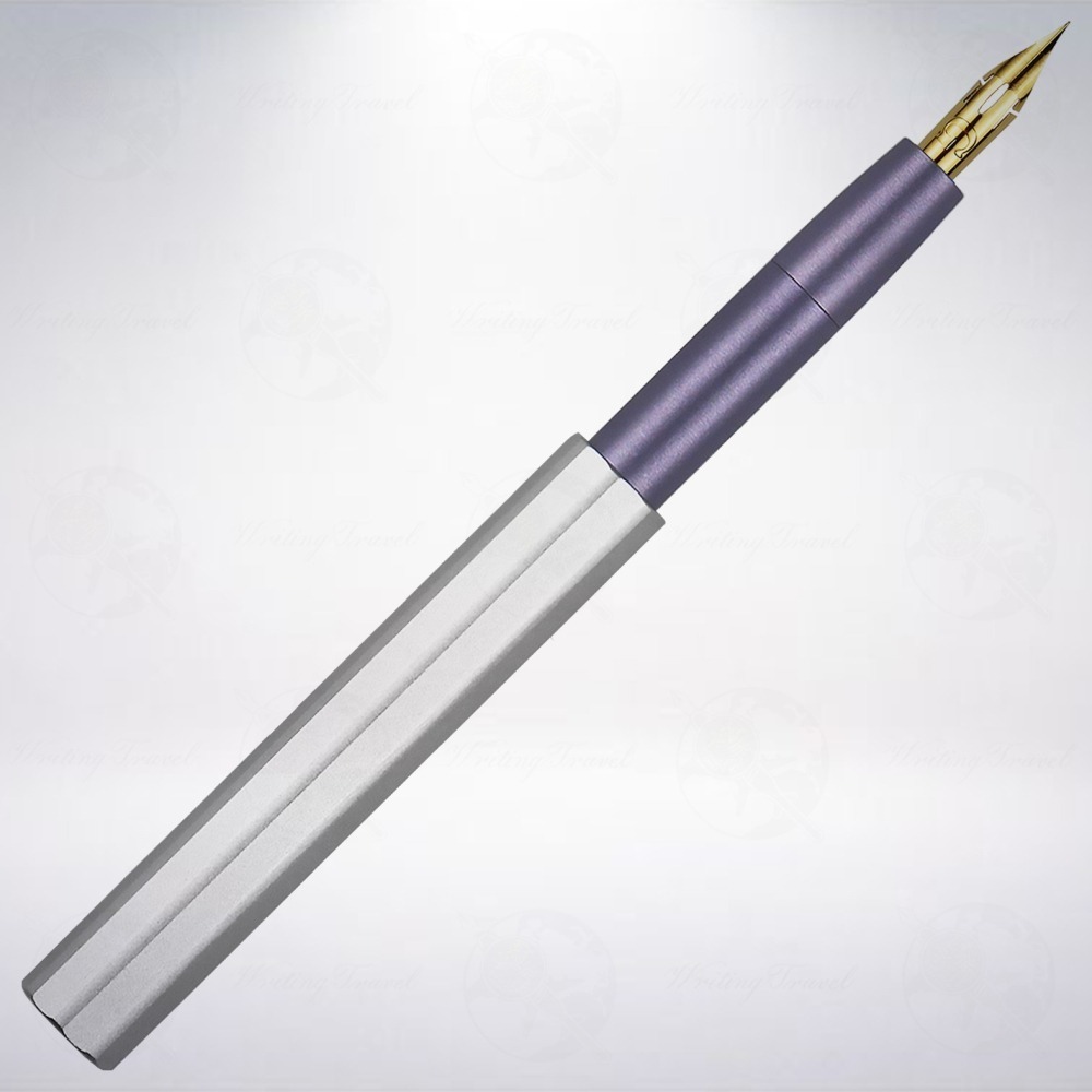 來自英國的「Tom’s Studio」工作室,專門設計與生產各式各樣筆記具與耗材,此款口袋型鋼筆是繼「火花/Spark」鋼筆後,所推出得意之作。闔蓋時僅有93mm,比Kaweco短鋼還要短一些,但將筆蓋套在筆尾後,長度變成163mm,就成為一般書寫時的長度,讓這支鋼筆不僅攜帶方便,也美麗實用。筆身共有4色,包括紫丁香、鼠尾草綠、柔和玫瑰金和常春藤綠。筆尖部分搭配「Pro-flex」筆尖,搭載日本「斑馬/ZEBRA」公司出品的鈦金G尖和獨家特製的「Extra Inky」白色筆舌。鈦金G尖較一般G尖耐久性佳,書寫長度可達75m,比起一般G尖長55m,同時能長時間保持線幅粗細均一,線條不易變粗。另外也很適合寫英文書法的E.S體(Engrosser’s Script)、銅板體(Copperplate)和史賓賽體(Spencerian Script),筆尖彈性最粗可達1.8mm,鍍鈦後使用壽命在所有「斑馬/ZEBRA」出品的G尖中名列前茅。為了改善墨水流動,提升供墨效率,特別採用3D列印技術製作的「Extra Inky」白色筆舌,與具彈性的筆尖搭配起來,更顯相得益彰。