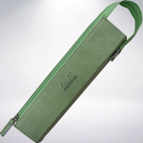 「Rhodiarama」筆袋採用觸感極佳的義大利人造皮革製成。 方形輪廓,中心的「RHODIA」標誌以凹陷的方式呈現,整體具有獨特的時尚感。上部的拉鍊可以操作筆袋開闔,內襯為平紋針織面,維持簡約設計,無設置任何隔間。內部空間足以應付個人需求,可以存放隨身各式筆記具,長度上可以收納較長的款式,也可以隨自身需求放置化妝品、藥物或其他小型物件,打開使用時,可以完全打開平放,方便取用,是十分實用的文具收納夥伴。另外,筆袋的一側附有提把,有效的提升攜行性。