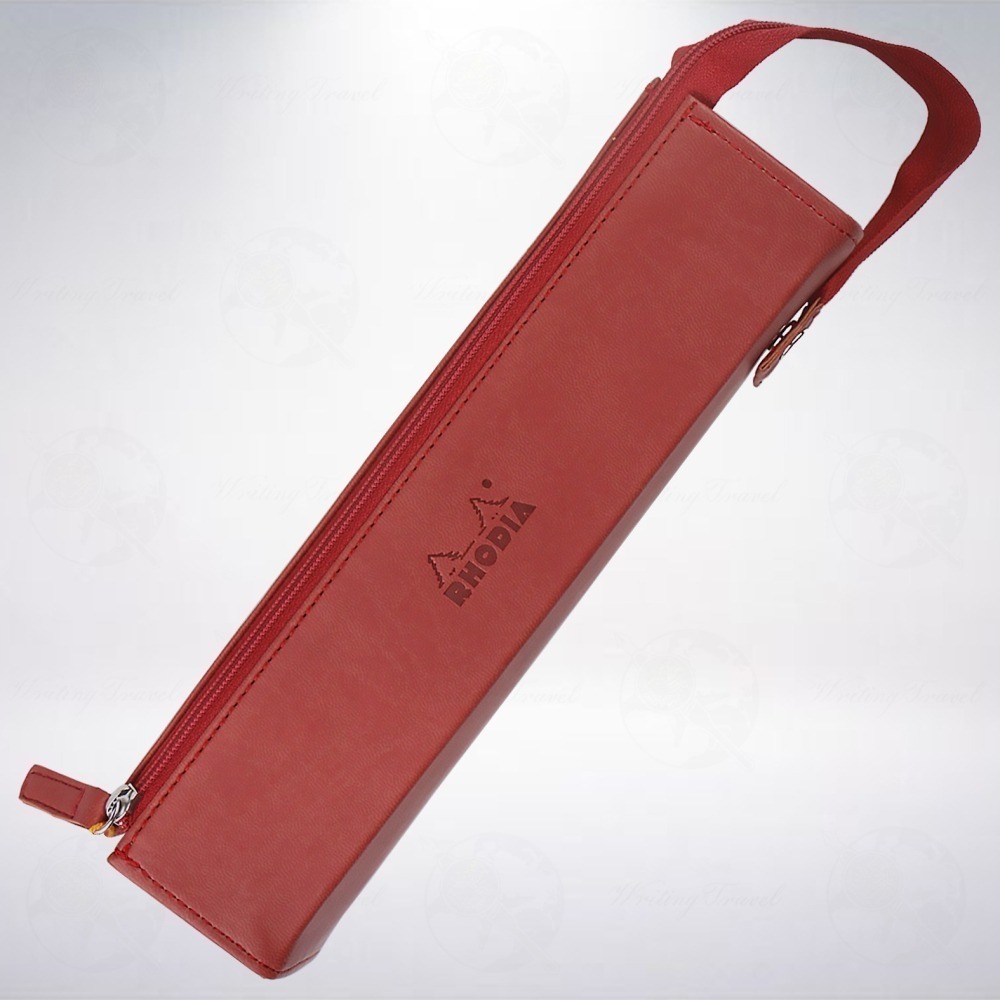 「Rhodiarama」筆袋採用觸感極佳的義大利人造皮革製成。 方形輪廓,中心的「RHODIA」標誌以凹陷的方式呈現,整體具有獨特的時尚感。上部的拉鍊可以操作筆袋開闔,內襯為平紋針織面,維持簡約設計,無設置任何隔間。內部空間足以應付個人需求,可以存放隨身各式筆記具,長度上可以收納較長的款式,也可以隨自身需求放置化妝品、藥物或其他小型物件,打開使用時,可以完全打開平放,方便取用,是十分實用的文具收納夥伴。另外,筆袋的一側附有提把,有效的提升攜行性。