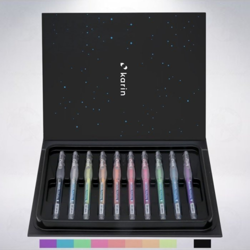 Karin成立於1989年,製作各式文具用品,專精設計製作麥克筆和細字筆,希望藉由使用他們設計的筆記具,實現您心中的創意想法,豐富您的生活。「DECO GEL」共推出3大系列,共50種顏色的1.0mm凝膠筆,適合繪畫、塗鴉或者書寫。包含 「Milky Way(牛奶色系)」、「Metallic(金屬色系)」、「Star Sparks(金蔥色系)」,在白紙和深色紙皆顯色良好,也可應用在玻璃、金屬或石頭等表面。若表面有先上水彩、水性或者顏料麥克筆顏色後,搭配此凝膠筆,表現也非常好,此時就可搭配自家產品BrushmarkerPRO水性軟筆刷麥克筆和Pigment Decobrush顏料軟筆刷麥克筆更是相得益彰喔!凝膠筆為含有顏料的水性墨水,可顯現亮麗色彩,且出墨順暢,不易暈透,在紙上乾掉後防水且耐光。