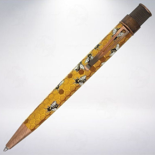 筆身採用酸蝕刻製程營造出蜂窩紋理,並在印上一隻隻可愛的蜜蜂,黃色的筆身十分少見且顯眼。 筆頭與筆帽部分以古銅色搭配,加以舊化處理,讓整體風格十分強烈,另外,筆帽上方還躲藏一隻愛吃蜂蜜的貪吃小熊,是不是非常可愛呢? 筆芯部分使用油性的EasyFlow原子筆芯,派克通用形式讓找尋備用筆芯也變得方便,限量發行,喜歡的朋友,趕快帶回家囉!