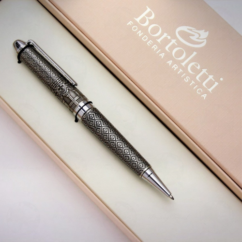 「PENS03 Ducale」原子筆是獻給總督和威尼斯最重要的宮殿。哥德式風格的總督府俯瞰聖馬可盆地,是最寧靜的威尼斯共和國的元首的住所,其統治者在此居住至1789年,至今仍然是這座美妙城市的象徵和心臟。宮殿代表威尼斯共和國的國力展現,內部包括治安官、參議院和大議會的議事廳。「Ducale」原子筆的原始設計源自於Bortoletti藝術大師的鉛筆,這是整個創作過程的關鍵,融合威尼斯的世俗符號和現代品味,並在總督的筆下表達。正是透過對集體記憶中的符號的精心選擇,以及它們與當下的相遇,歷史與現代的設計在鋼筆中融為一體。