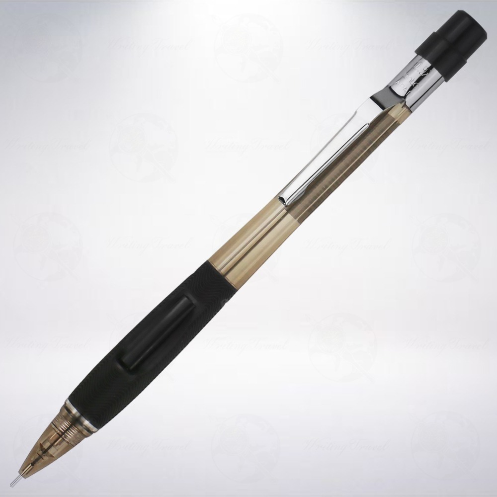 「Pentel」公司旗下十分經典的自動鉛筆系列。出芯按鈕位置設置在波浪形紋路的握位上,使用時只要輕鬆按壓即可出芯,橡膠的材質不易打滑,可以讓手牢牢握住。通透的筆身,也增添許多機械感。
