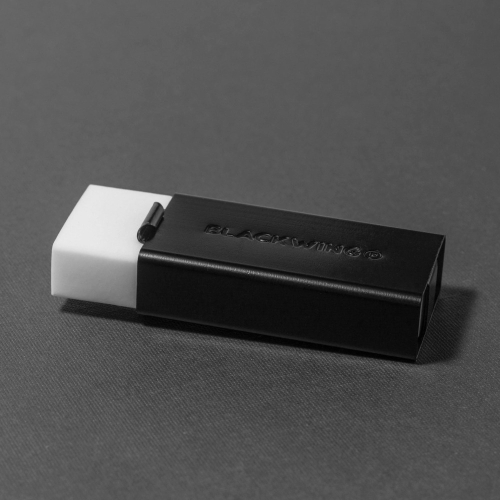 「Blackwing」可以說是鉛筆界的傳奇,自1930年代由Eberhard Faber公司開始製造到1998年停產,叱吒文具界將近70年,在知名購物網站eBay上還曾經創下單支40美元的歷史紀錄。橡皮擦是鉛筆使用過程中的必備夥伴,為了提升使用體驗,並將增加時尚感,這款獨特的手持工具於焉誕生。 橡皮擦本體由特殊的柔軟材料製成,可以乾淨、輕鬆地擦除鉛筆形成的線條石墨。外殼由耐用的鋁製成,有效增加使用時的手感,同時也提供牢固的抓握力,內側尚有一個固定夾,可以視使用情形固定橡皮擦在適當的位置。