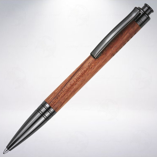 由日本著名的木料加工與製作公司:「Hacoa」所設計的木軸原子筆,筆身採用天然木材製作,「 花梨木/Karin」取材自東南亞(如泰國、緬甸)生長的豆科木材,是一種相對昂貴,呈現漂亮紅棕色的材料,木紋還富含黑色條紋和微紅色。重量相對較重,加工難度大,所以當製作成終端產品時,可以使工匠感受到手工藝的完美樂趣。在加工過程中,具有獨特的氣味,類似於刺鼻的刺激性油類。經常用於製作樂器和裝飾品,透過變化多端的紅棕色呈現無比的華麗感。