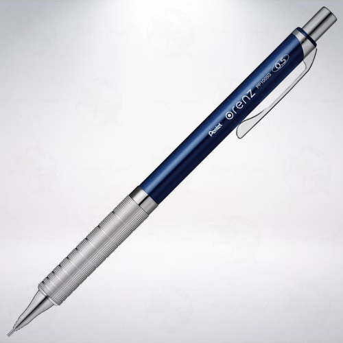 2014年的春天,日本文具大廠「Pentel」正式發表了搭載「ORENZ」系統的自動鉛筆,不僅提供了小芯徑筆款筆芯的耐用性,也是手勁大使用者的一大福音。2020年以小改款版本再度推出,改動部分主要為握位處的花紋,上一代的「菱形」紋路邊緣較為尖銳,長久使用容易造成「咬手」的感覺,新一代則採用了較為圓滑的方塊狀紋路,對手部的接觸面積較大,不僅緊貼性佳,手部的壓力也較可以得到緩衝。「ORENZ」系統簡單來說就是將筆芯完全「包覆」在筆身中,使用時只要將筆芯按壓至切齊護芯管即可,使用完畢時護芯管可以收至筆身,下次使用時只需要按壓筆帽1次將護芯管伸出即可開始使用,即是所謂的「1-Click」,大大提升使用上的便利性,也讓筆芯在使用過程中不容易斷裂,可用性可以大大提升。「Orenz Metal Grip」是加入金屬感的質感之作,筆帽、筆夾、握位與筆頭皆以閃耀的金屬件呈現,芯徑為0.5mm,筆身顏色款式為「深藍色」,著重實用性或習慣寫細字的朋友,不要錯過囉!