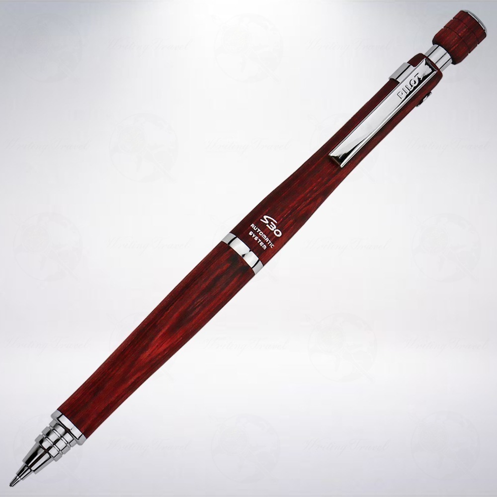 繼「Automac」走入歷史之後,日本「 百樂/PILOT」公司再接再厲推出搭載「自動出芯」機制的「S30」,也是「S」家族,包含S3、S5、S10、S20,的最新成員,同時也是目前唯一一款搭載「自動出芯」機制的「木軸」筆款。筆身規格大致上與S20相同,材質採用樹脂浸潤的天然木材製成,以增強堅固與耐用程度,手部接觸的感覺也更加提升一個等級。筆頭、飾環與筆蓋的金屬件部分,採用亮感呈現,與S20的消光感不同,筆蓋部分也以與筆身相同的木材顏色呈現,並取消原本在S20上搭載的筆芯硬度指示窗。筆頭採用「蛋糕」狀,最前端當收納時可以縮入筆身,避免不慎損壞,使用時,只要將筆芯稍稍伸出筆身,在書寫過程中,透過施加在筆頭前端的壓力,即可誘發筆芯往筆身外面送出,達成自動出芯的目的。筆身重心約莫距離筆頭65mm左右,有效提升整體的舒適感,是一款為書寫而生的優質筆款。