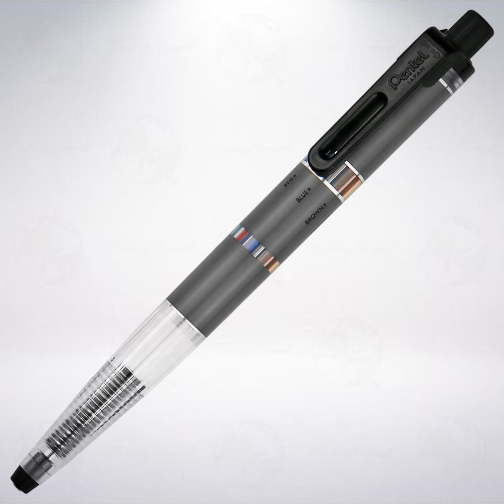 日本文具大廠「Pentel」公司所推出的創新商品:「Multi 8」,內附紅色、藍色、綠色、茶色、橙色、黃色、不可複印(NON COPY)的淺藍色和粉色,可以旋轉筆夾接近筆蓋處凸起的位置到筆身上顏色的位置,再按壓筆蓋,即可使用該顏色,要將筆芯收入時,請將筆蓋向下壓到桌面到筆芯完整收入筆身即可。非常適合拿來勾勒草圖、筆記或者塗鴉使用,便利性極高。