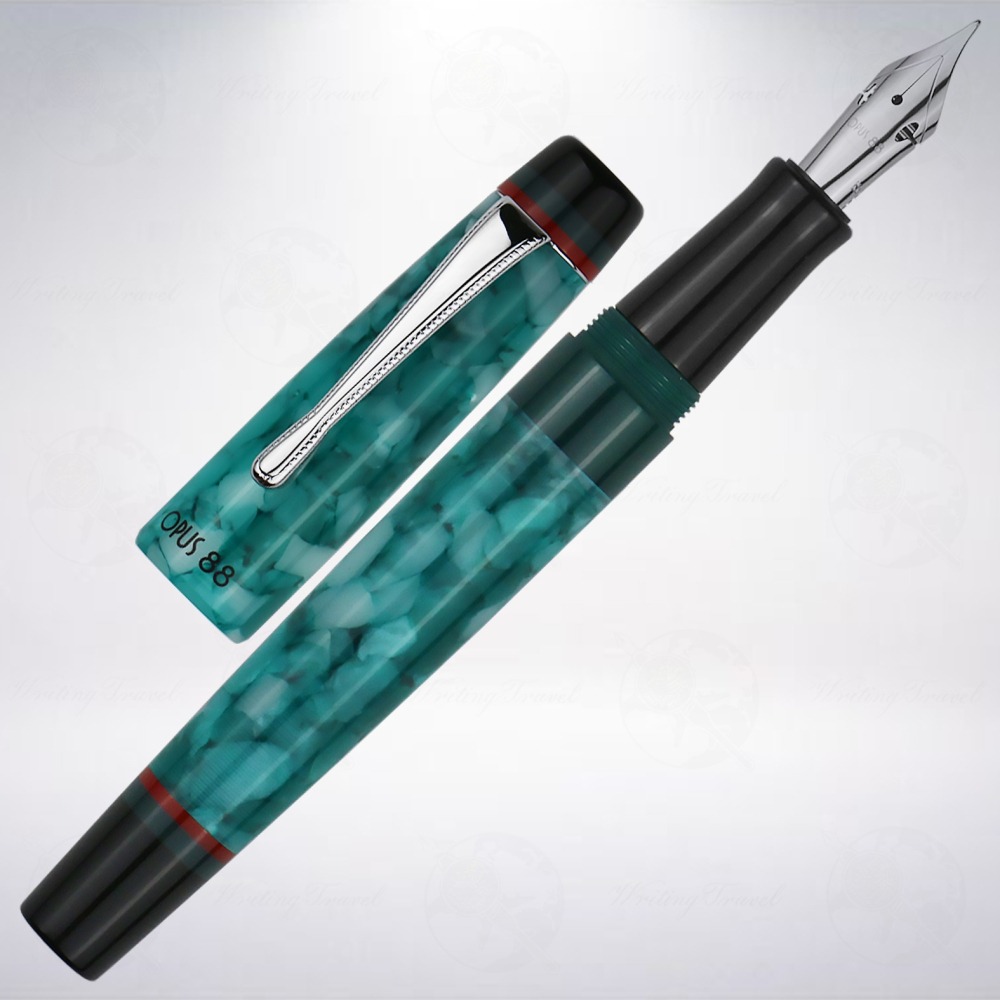 OPUS 88 推出新款鋼筆「Minty 系列」,壓克力筆身呈現出瑰麗般的色彩,接近握位處有觀墨窗,讓您可欣賞墨水顏色,也可掌握墨水餘量。一貫正統的滴入式上墨方式,儲墨量大,大筆身設計,氣勢十足,握感舒適。筆尖部分搭配結構特殊的彈性尖,配合滴入式上墨的設定,相得益彰,彈性可壓至1mm左右,粗細變化,可以應付各式書寫需求。