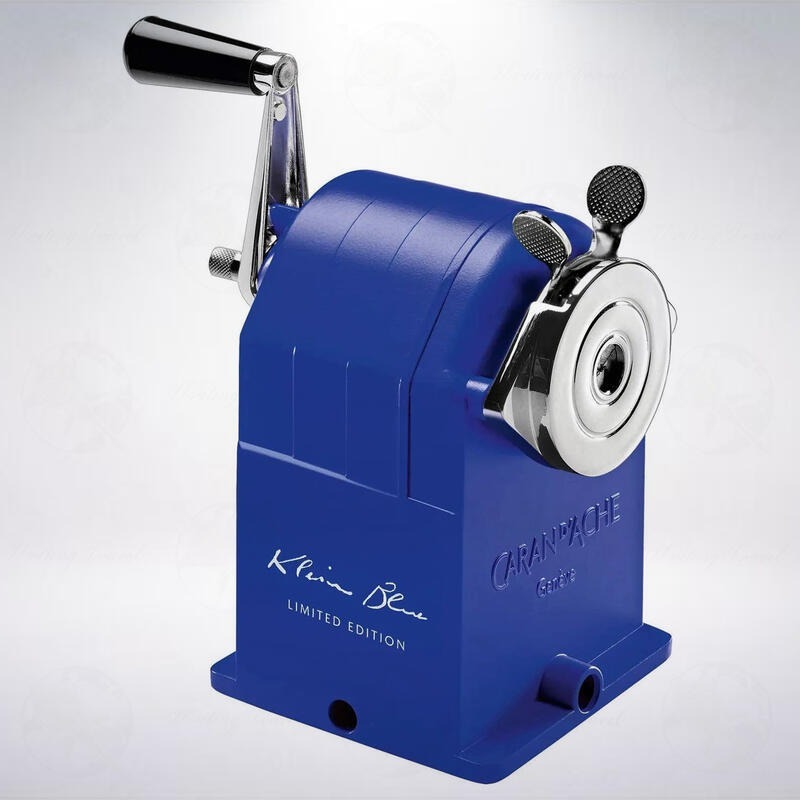 削鉛筆機身印有「Klein Blue」,適用於直徑4-10mm的圓形和六角形鉛筆、色鉛筆,可依照需求調整削筆的鈍尖,削刀可替換,是乘載歷史悠久的情感的重要產品。