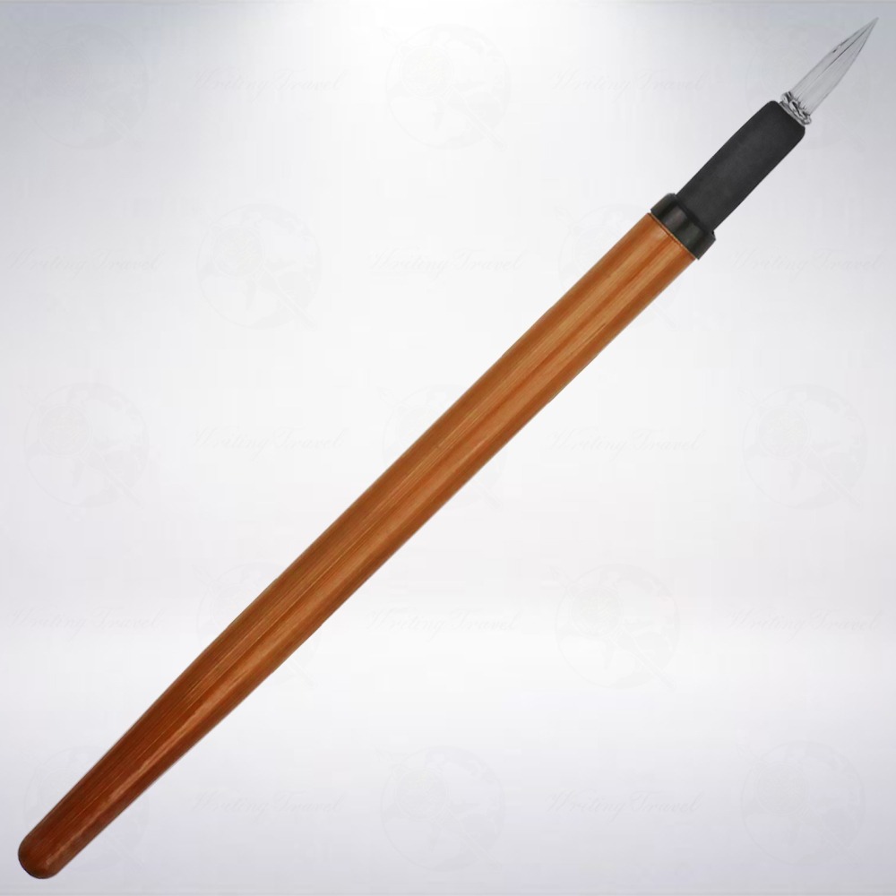 日本昭和時期獨具風格的竹軸玻璃筆,主要分為筆桿和玻璃筆頭2個部分,前端的玻璃筆頭不用時可以反蓋,以保護玻璃筆頭,相當適合隨身攜帶。筆尖尺寸約為細字, 表面上具有直條紋狀的溝槽,讓墨水可以有效的附著,確保書寫時的續航力。筆軸以天然竹子製作,因製造年代久遠,每支均帶有不同範圍與位置的斑點或紋路,此外,軸徑約莫1cm 左右,握感舒適。
