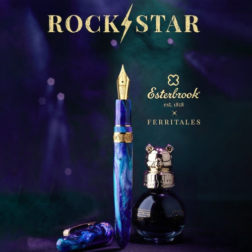 Esterbrook和知名墨水品牌「Ferris Wheel Press」合作打造了「Estie ROCKSTAR」鋼筆,它將 Estie 系列的標誌性特徵與Ferris Wheel Press的富有想像力的視覺語言相結合,打造出一款具有引人注目的外觀和鮮明個性的特別版。它由2個以將書寫體驗昇華為完整美學享受而聞名的品牌攜手打造,延續了雙方此前合作的宇宙精神,並以更加高雅、精緻和富有戲劇性的方式重新詮釋。最終呈現的鋼筆既保留了創意與奇思妙想,又展現出更成熟優雅的氣質。筆身採用美國訂製的壓克力材質,以迷人的黑紫色調為主,並點綴以青綠色紋理,為材質增添了層次感、動感和明亮的對比。每個細節都賦予了這支鋼筆獨特的外觀,同時又保持了Esterbrook一貫的平衡與優雅。筆尖和飾環上的品牌標誌更進一步,彰顯了這款鋼筆的專屬氣質。「Estie ROCKSTAR」不僅僅是1支鋼筆,更是1個精心打造的完整套裝,旨在提供沉浸式的體驗。套裝內包含1支「Estie ROCKSTAR」鋼筆、1瓶限定「搖滾熊造型」的訂製墨水,以及1枚與本次聯名系列音樂主題相呼應的專屬吉他撥片。所有物品都收納在1個精心設計的收藏盒中,不僅彰顯了兩個品牌的強強聯手,更讓開箱體驗令人難忘。限量生產,售完後即絕版。