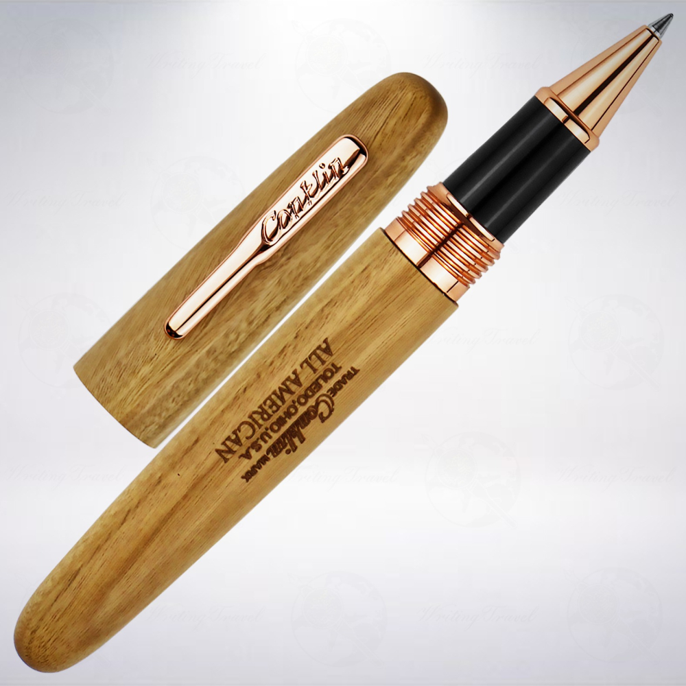 美國百年的鋼筆公司「Conklin」,秉持創新的精神,以旗下知名鋼筆系列: 「All American」為藍本設計,筆身以莫三比克綠木,筆身刻印「TRADE Conklin MARK TOLEDO, OHIO, U.S.A. ALL AMERICAN」,是一款大型而舒適的鋼筆。且搭配同為玫瑰金的筆夾與飾環,個人風格強烈。筆芯方面採用歐規水性筆芯,書寫滑順,足以應付一般使用需求。限量版本,於筆蓋上刻「Limited Edition」和限量編號,全球限量898支,不僅實用性高,且具有收藏價值。