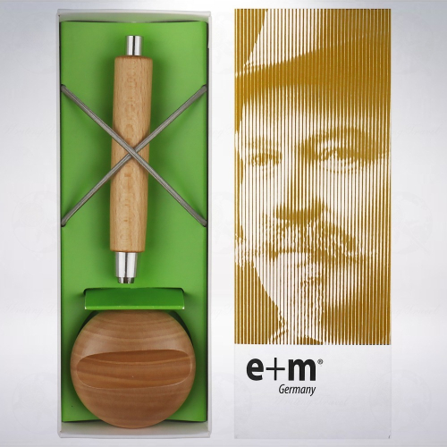 「e+m Holzprodukte」於1899年在紐倫堡成立,是專業的筆桿製造商。家族式經營,目前位於德國巴伐利亞州的諾伊馬克特(Neumarkt)城,強調使用天然原料獨立製作並生產各式的書寫工具。其中使用FSC認證的木材是他們的主要製作訴求,採用傳統的製造方法和技藝精湛的製作工藝,在簡單的環境中產生了一系列美觀的文具。「Workman」就是產品線中重要的一支,主要強調小巧的可用性,運用天然木材製作出溫潤的圓形筆身,單純的銀色金屬筆身恰恰襯托出木材的紋路之美,讓木材在視覺框架中更為顯眼,是喜愛木質筆款朋友們的不二選擇。搭配的筆擱不僅可以當削鉛筆器使用,也可作為書鎮之用。