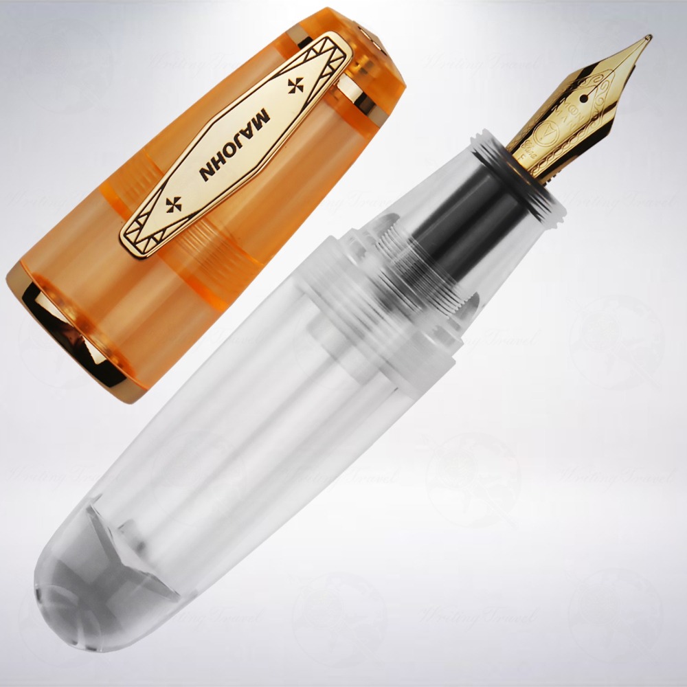 透明無色,既是五顏六色,冠上心儀的彩墨,就是屬於自己的顏色。筆尖為無孔細尖,雙色真空鍍金不易脫色,圓潤、肥而不膩,握在手裡會禁不住的把玩,有助於思考,激發靈感,因為足夠圓潤,手握感受細膩舒適,就算不寫,握在手裡也很舒適。滴入式筆桿儲墨結構,大容量不焦慮。