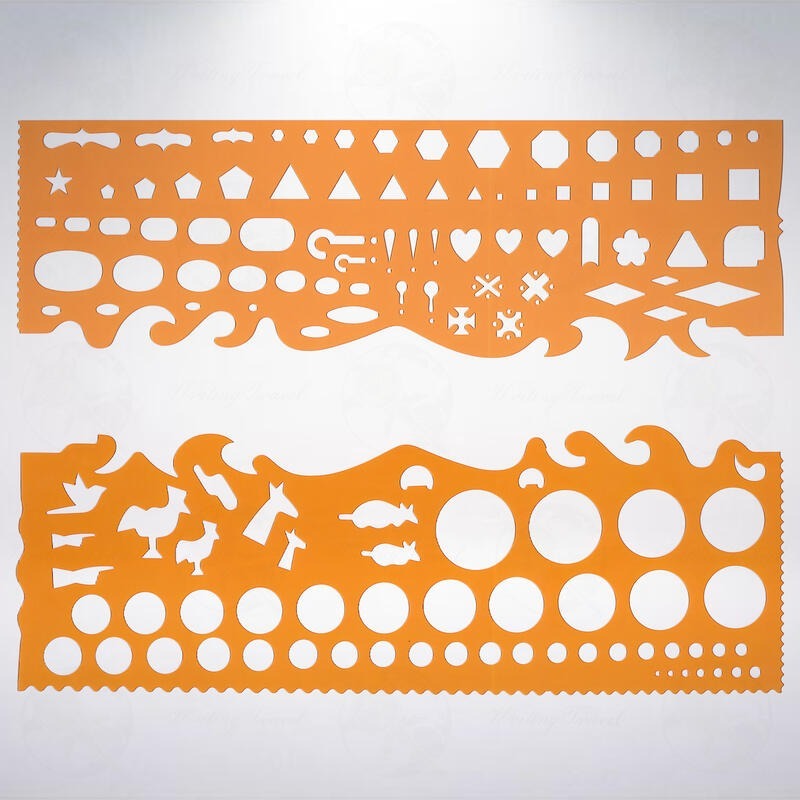 來自日本的製圖用品知名廠商「内田洋行(ウチダ)」所生產的專業定規,可以用來繪製各種識別圖形,主要材料為丁酸鹽,具有柔韌、不易開裂、透明度高等特點。一側經過磨砂處理,以防止不需要的反射光進入眼睛。尺寸約為339×127mm,厚度約0.5mm,內含2支不同的美術尺。